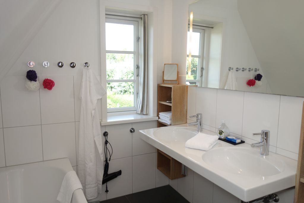 Die Eulenluke bietet Ihnen auch den Komfort von zwei Badezimmern, die mit einer bodengleichen Dusche sowie einer Badewanne ausgestattet sind. Ein zusätzliches Gäste-WC sorgt für mehr Privatsphäre und Bequemlichkeit während Ihres Aufenthalts. Die notwendigen Utensilien wie Handtücher, Bettwäsche und Reinigungsmittel sind bereits vorhanden, sodass Sie sich um nichts kümmern müssen.