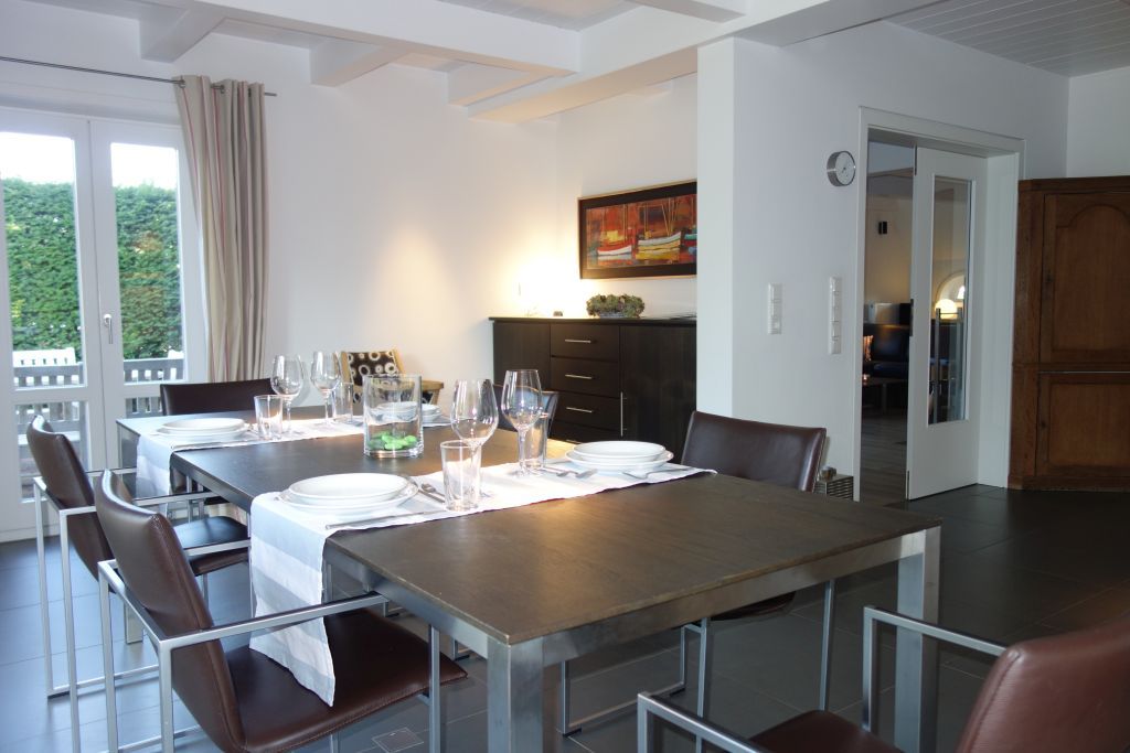 Die Unterkunft ist nicht nur geräumig, sondern auch gut ausgestattet, um Ihnen einen angenehmen Aufenthalt zu gewährleisten. Ein besonderes Highlight ist der offene Wohnbereich, der mit einer modernen Küche und einem einladenden Essbereich kombiniert ist. Die Küche ist mit allen erforderlichen Geräten ausgestattet, die Sie für die Zubereitung Ihrer Mahlzeiten benötigen, darunter ein Herd, ein Backofen, eine Spülmaschine, eine Kaffeemaschine und viele Küchenutensilien. Nach einem Tag voller Abenteuer können Sie es sich mit der Familie oder Freunden im Wohnbereich gemütlich machen, der mit einem Kaminofen, einem Fernseher und einem komfortablen Sofa ausgestattet ist.