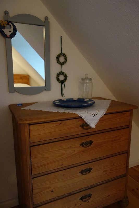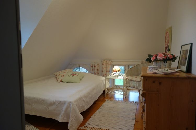 Schlafzimmer 3 (Obergeschoss): Französisches Bett (140 cm), gemütlich und hell.
