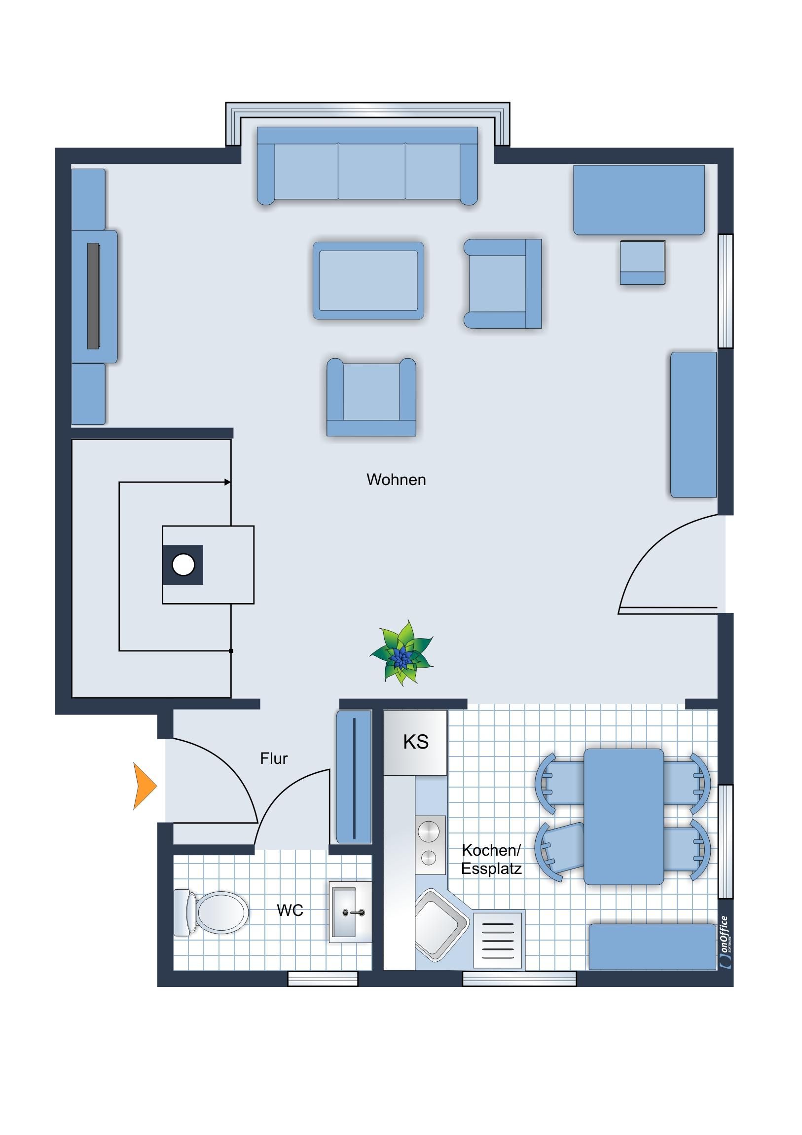 Mit einer Wohnfläche von etwa 95 qm bietet Ihnen diese Unterkunft einen einladenden Eingangsbereich mit Garderobe, ein Schlafzimmer mit einem komfortablen...