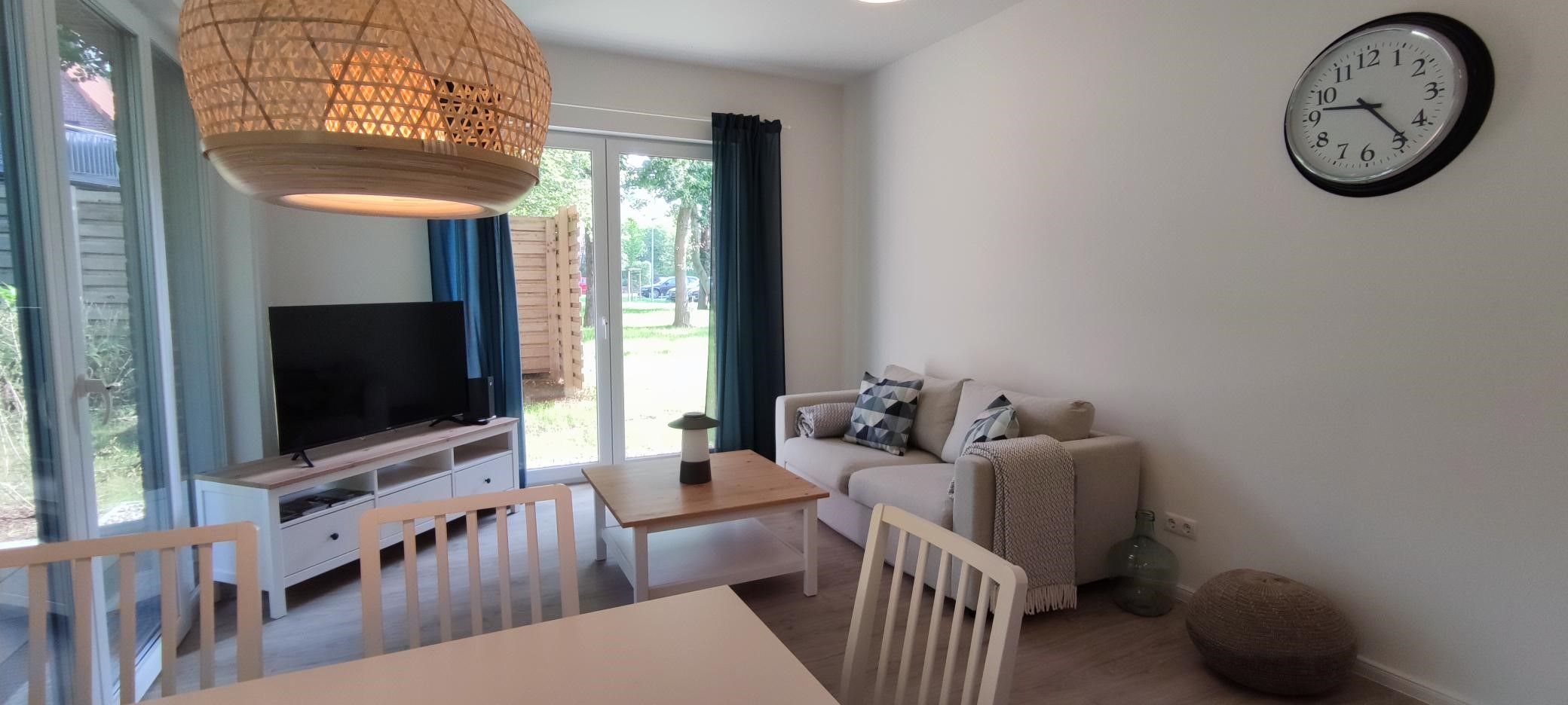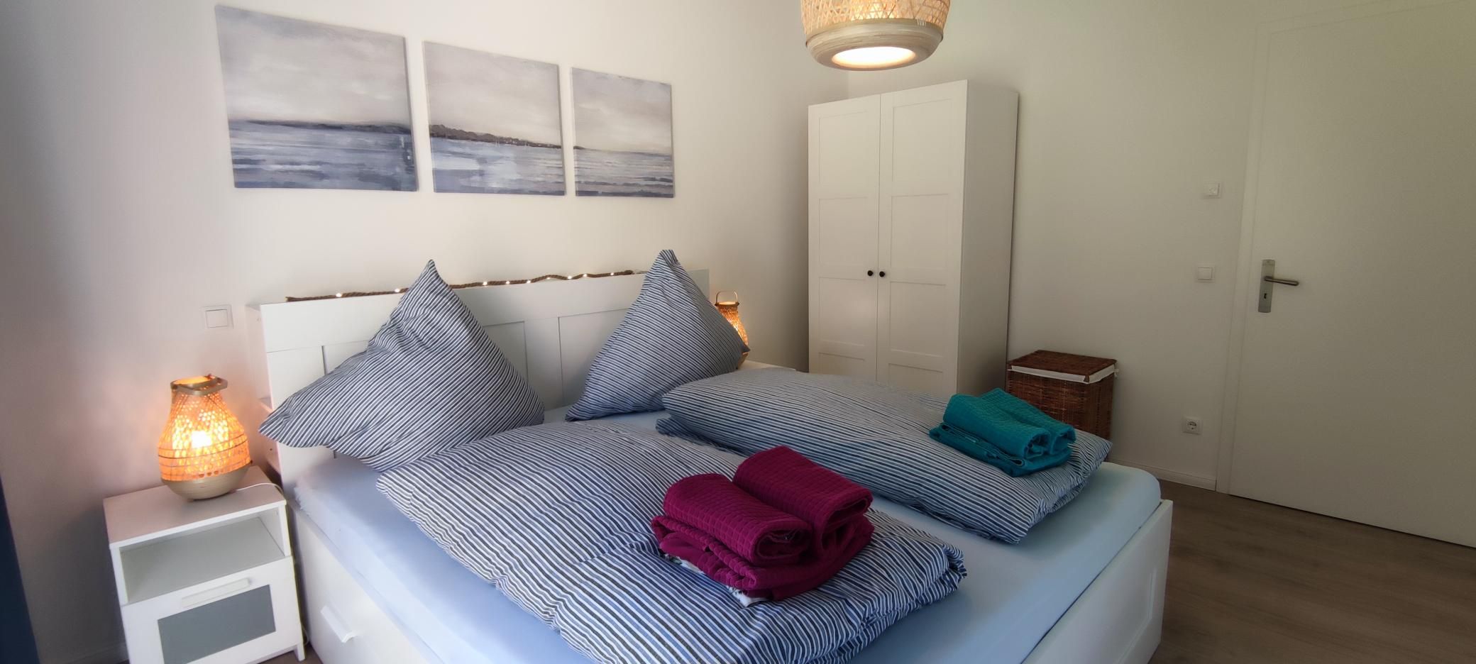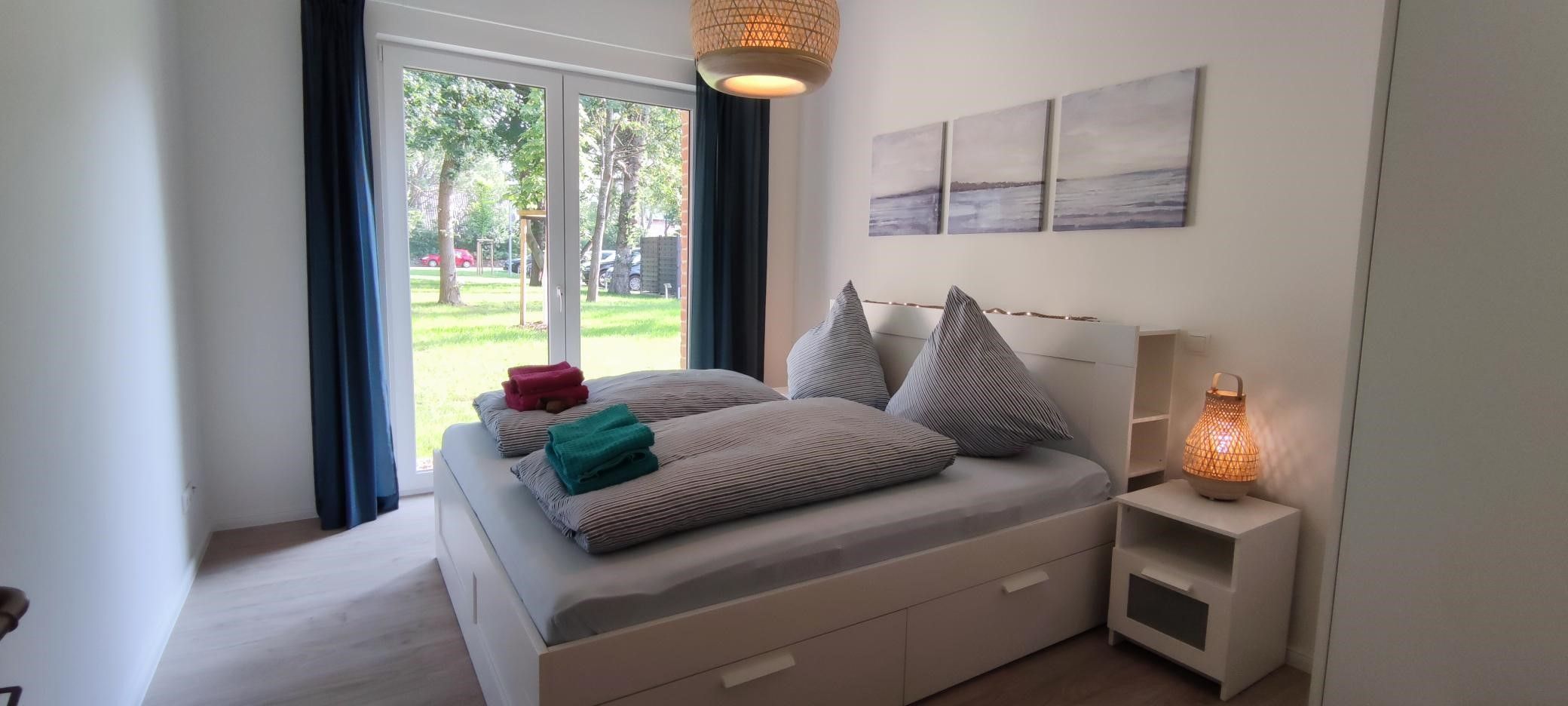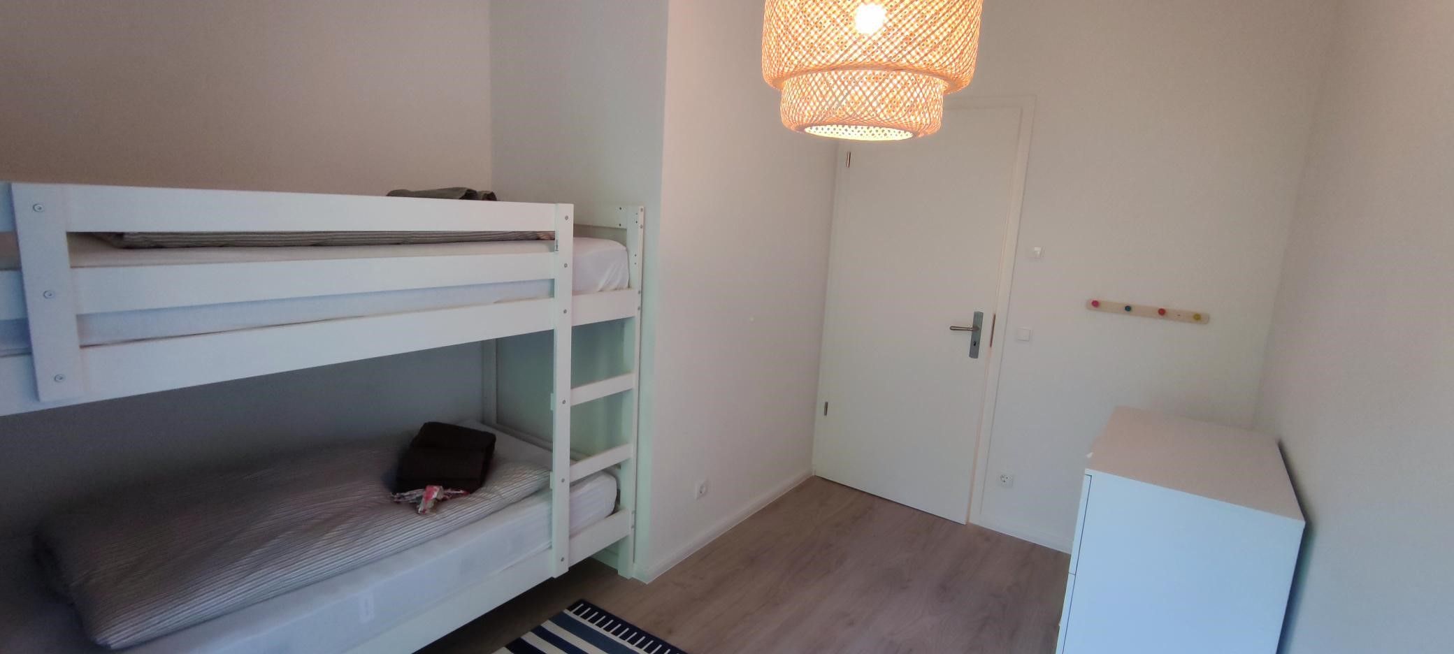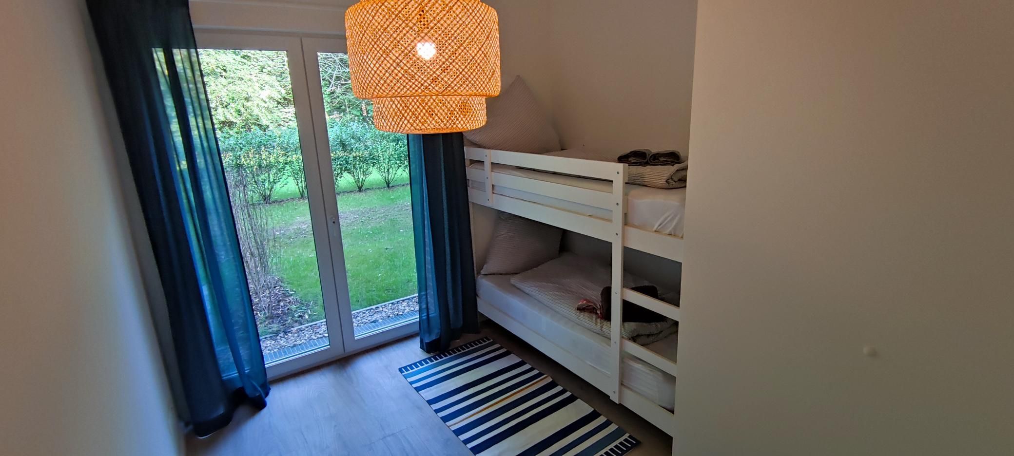 Sie betreten die Wohnung über den Eingang im westlich gelegenen Neubau und gelangen in den Wohn- und Essbereich, der mit einer modernen und voll ausgestatteten Küche mit Ceranfeld, Backofen und Kaffeemaschine verbunden ist. Genießen Sie Ihre Lieblingssendungen auf dem Flachbildfernseher und bleiben Sie mit dem Internetzugang auf dem Laufenden. Das Hauptschlafzimmer verfügt über ein gemütliches Doppelbett (180*200cm), während das zweite Schlafzimmer mit einem Etagenbett (2*90*200cm) ausgestattet ist. Das Duschbad ist hell und modern gestaltet und verfügt über eine ebenerdige Dusche.