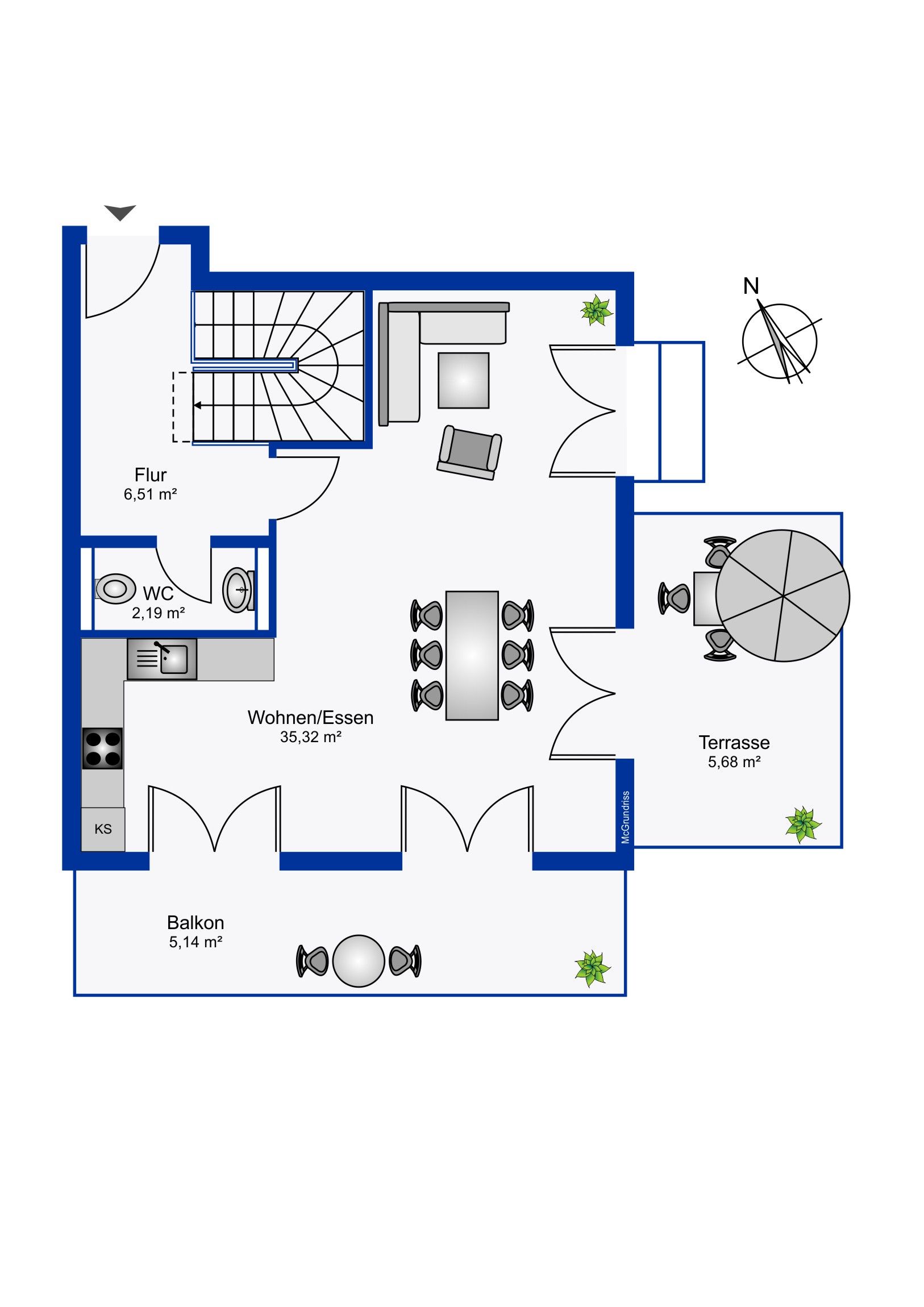 Die Wohnung erstreckt sich über zwei Etagen (Erdgeschoss und Souterrain) und bietet auf insgesamt 120 m² genügend Platz für bis zu 6 Personen und 3...