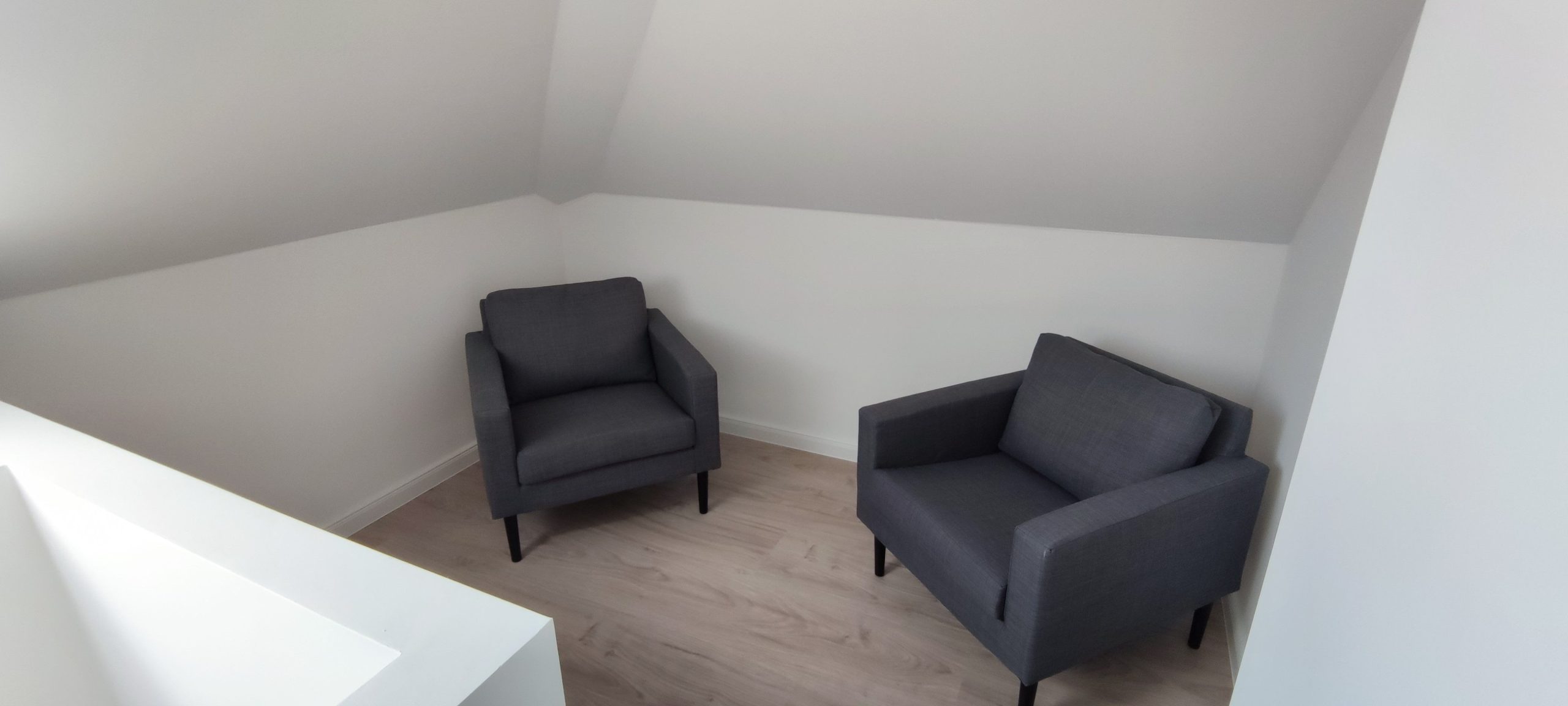Der Eingang zur Wohnung befindet sich im westlich gelegenen Neubau. Hier betreten Sie eine moderne, gut ausgestattete Küche mit Ceranfeld, Backofen und Kaffeemaschine. An den Essbereich schließt sich der Wohnbereich an, der mit einem Flachbildfernseher und Internetzugang ausgestattet ist. Der skandinavische Stil zieht sich durch die gesamte Wohnung und verleiht ihr ein besonderes Flair.