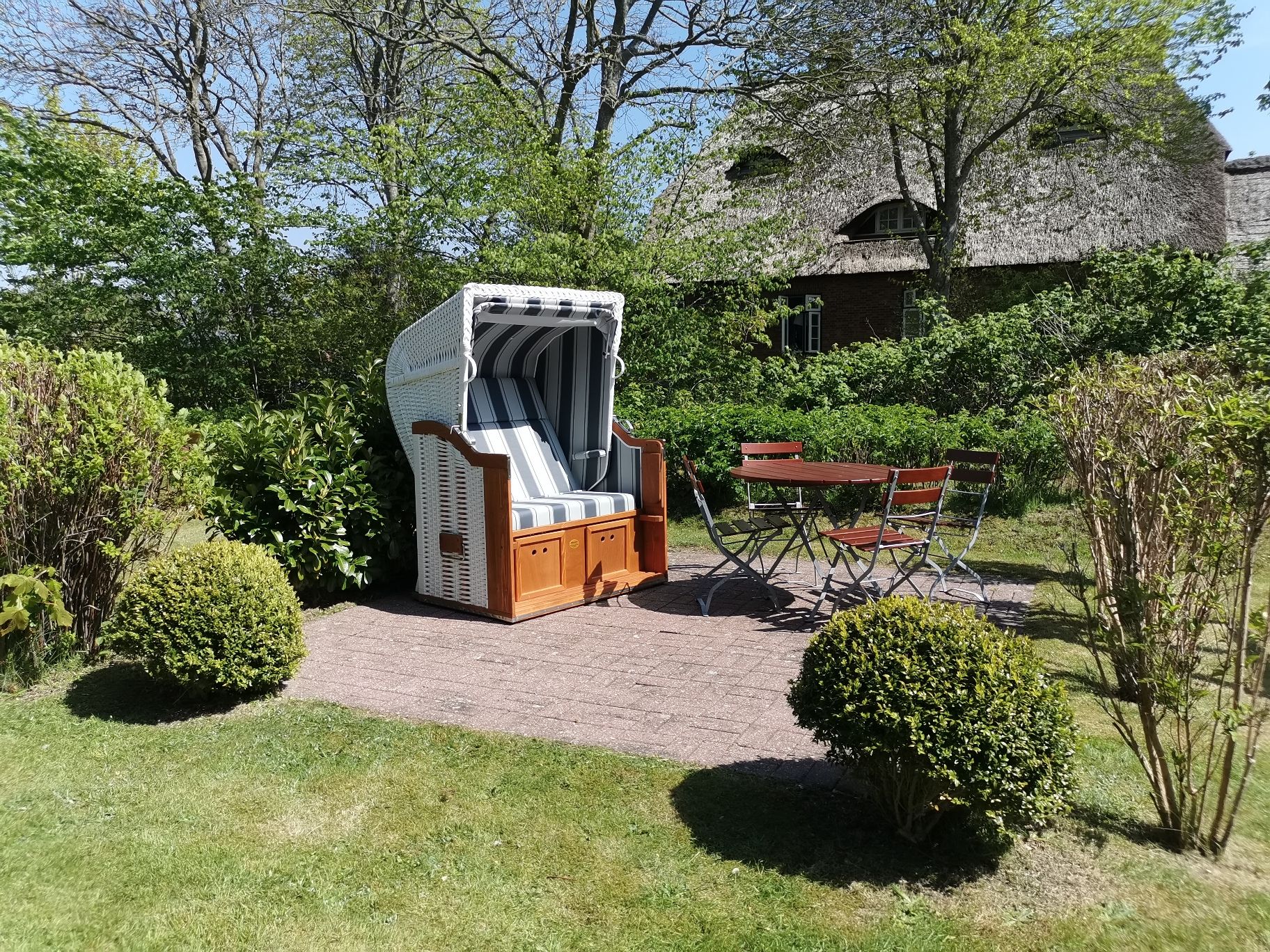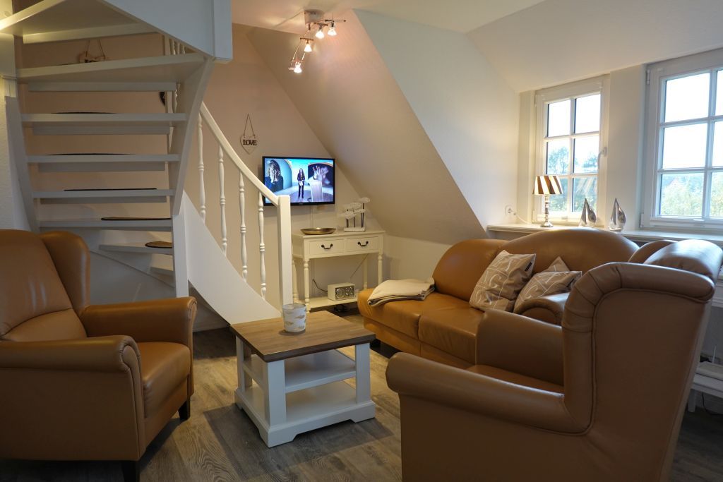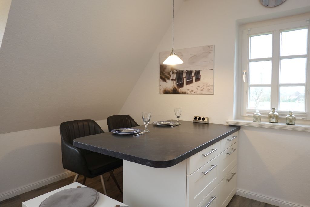 Erleben Sie unvergessliche Tage in dieser freundlichen, hellen Ferienwohnung unter Reet. Strand- und zentrumsnah gelegen, bietet die Unterkunft auf einem großzügigen Grundstück in Wyk die ideale Mischung aus Erholung und Komfort. Genießen Sie sonnige Stunden auf der Terrasse im Garten, die bis in den Abend hinein zum Verweilen einlädt. Die modern eingerichtete Ferienwohnung befindet sich in der 1. Etage und bietet Platz für bis zu zwei Personen. Sie verfügt über ein gemütliches Schlafzimmer mit einem Doppelbett und einem geräumigen Kleiderschrank. Der offene Wohn- und Essbereich lädt mit einem bequemen Sofa und einem Fernseher zum Entspannen ein. Eine neue, voll ausgestattete Küche ergänzt das wohnliche Ambiente perfekt. Verbringen Sie Ihren Urlaub in dieser charmanten Ferienwohnung und genießen Sie die Nähe zum Strand sowie die entspannte Atmosphäre Wyks. Ein Hund (max. 12 kg) ist auf Anfrage gestattet.