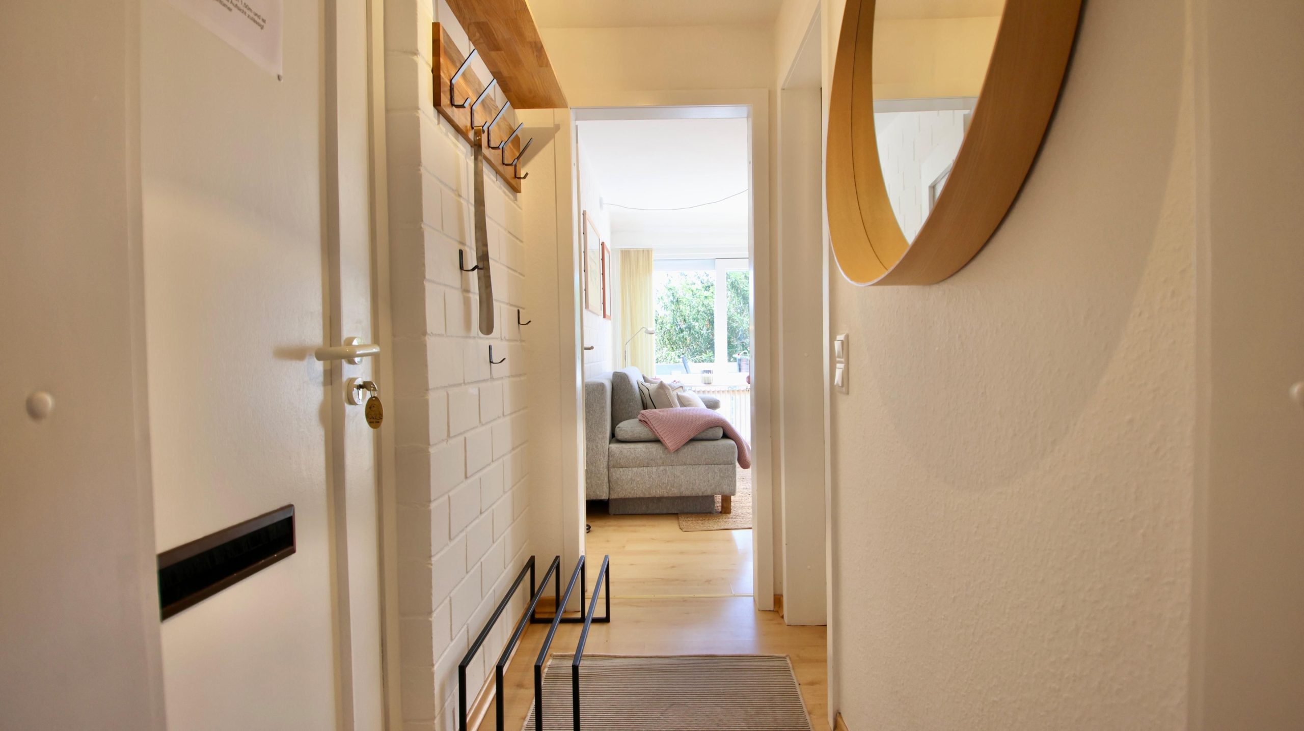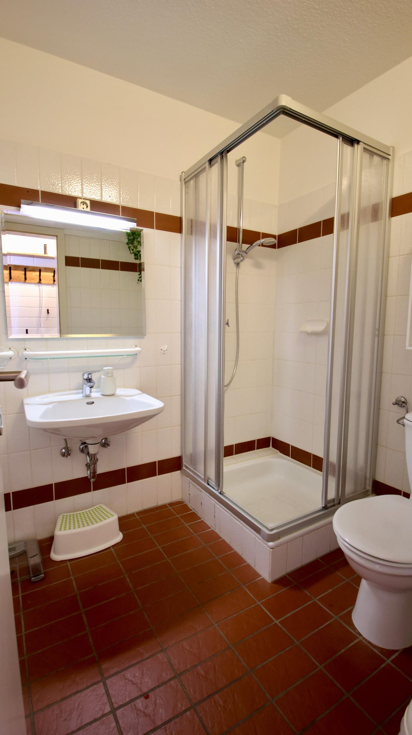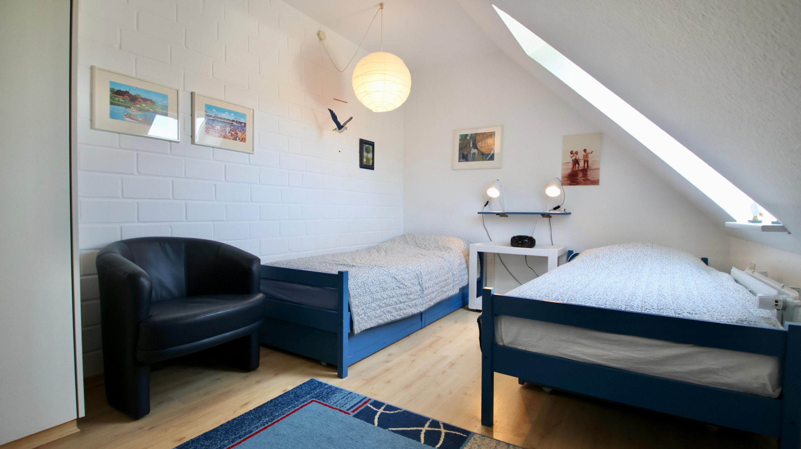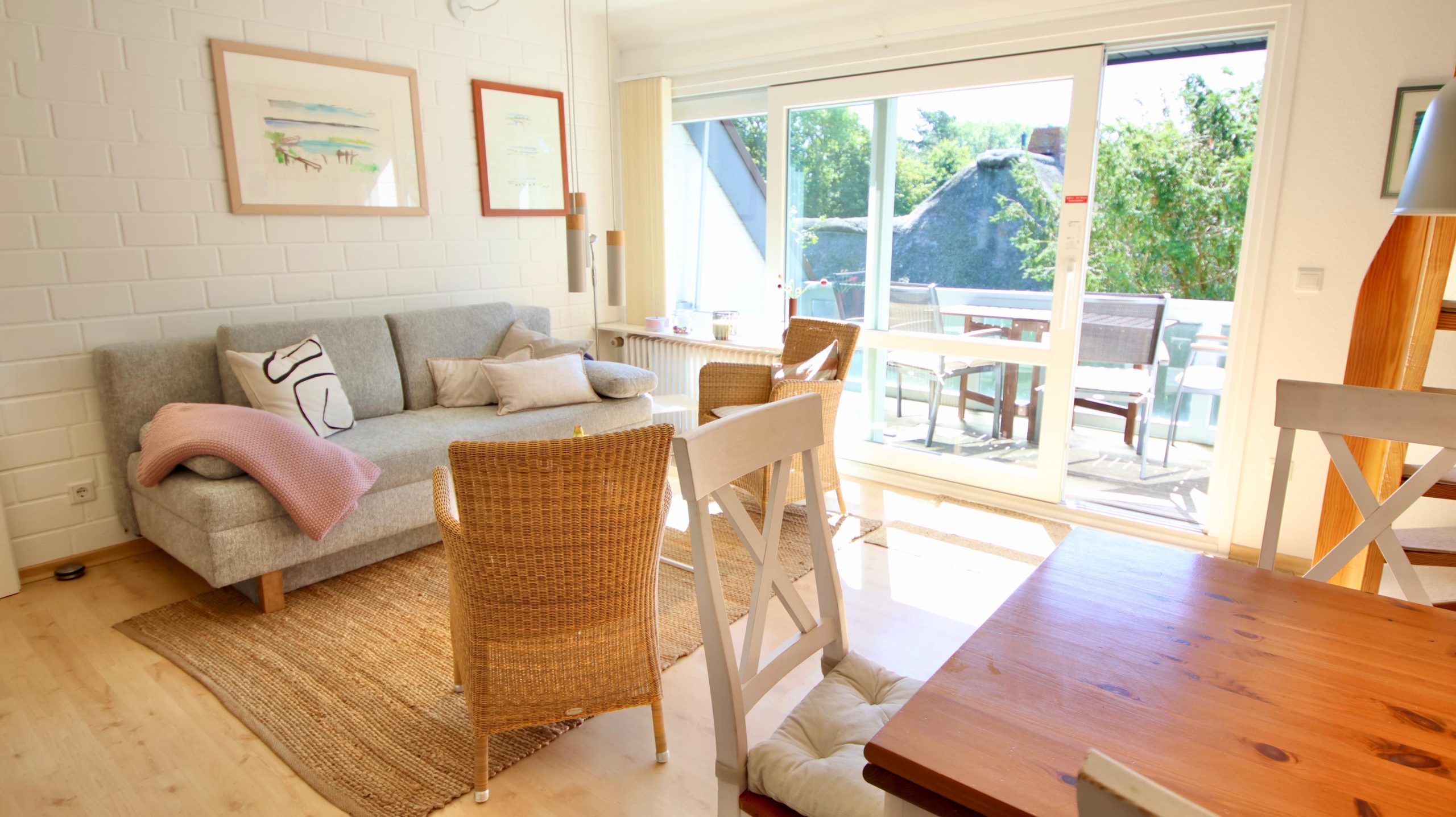 Helle 3-Zimmer-Ferienwohnung im Obergeschoss mit sonnigem Balkon. Die individuelle Wohnung verfügt über einen gemütlichen Wohn- Essbereich mit Zugang zur kleinen, aber gut ausgestatteten Küche. Der Balkon, der mit einer großen Markise versehen ist, erreichen Sie über den Wohn-Essbereich. Auf dieser Ebene befindet sich das Schlafzimmer mit zwei einzelnen Betten....