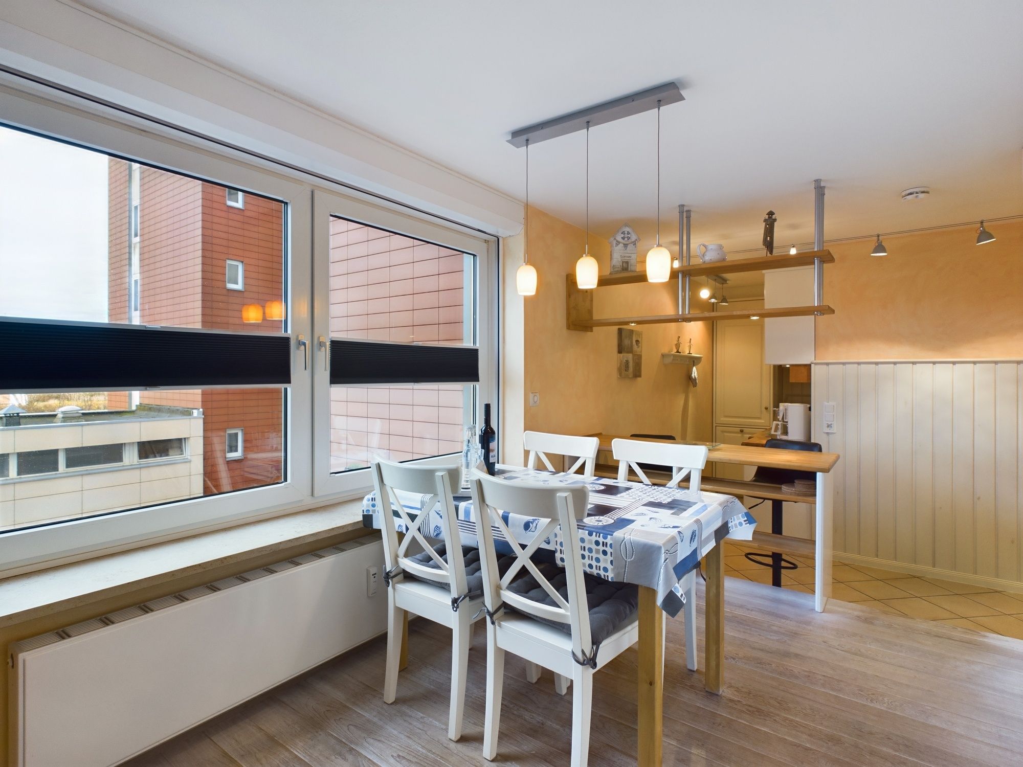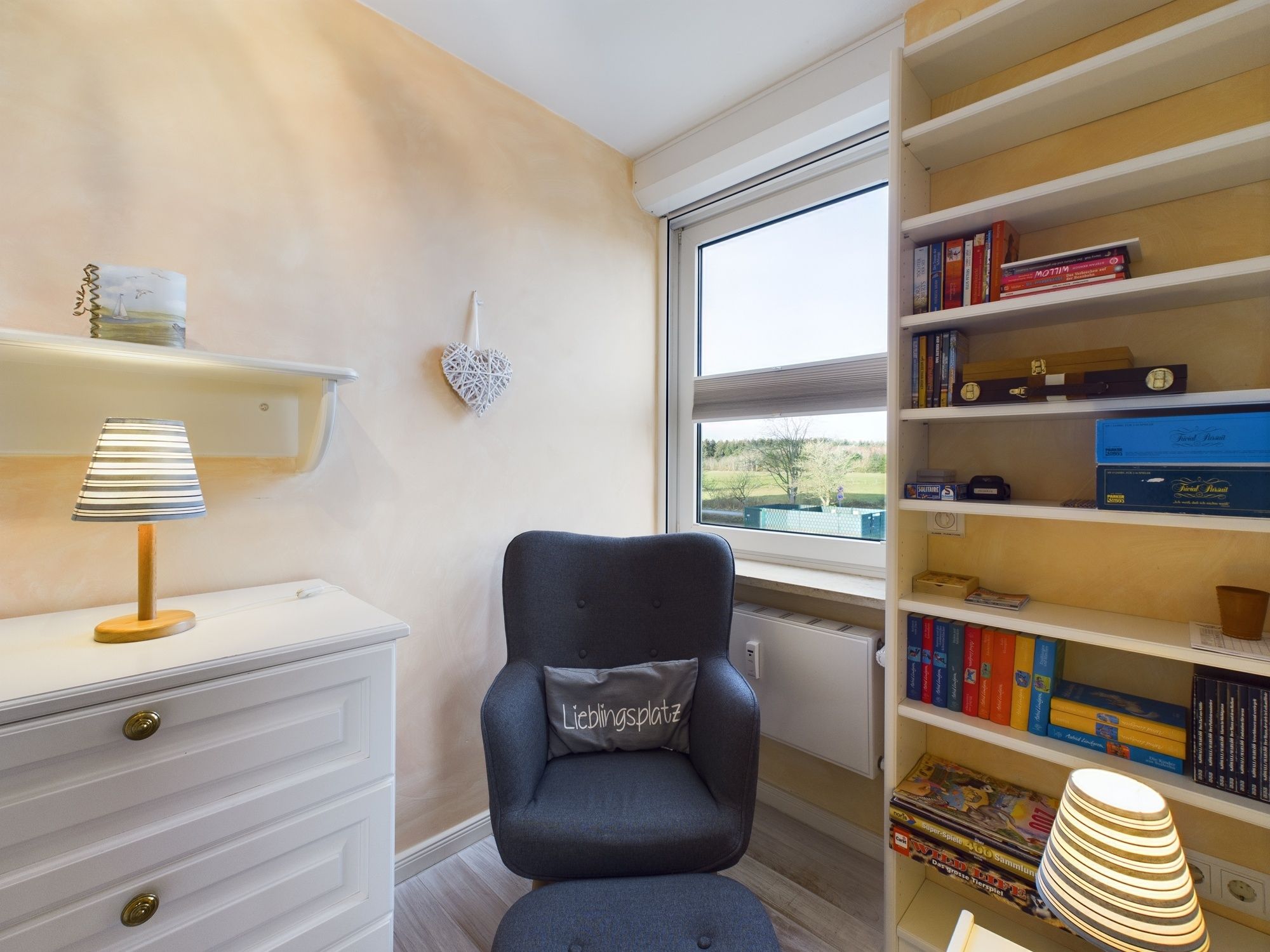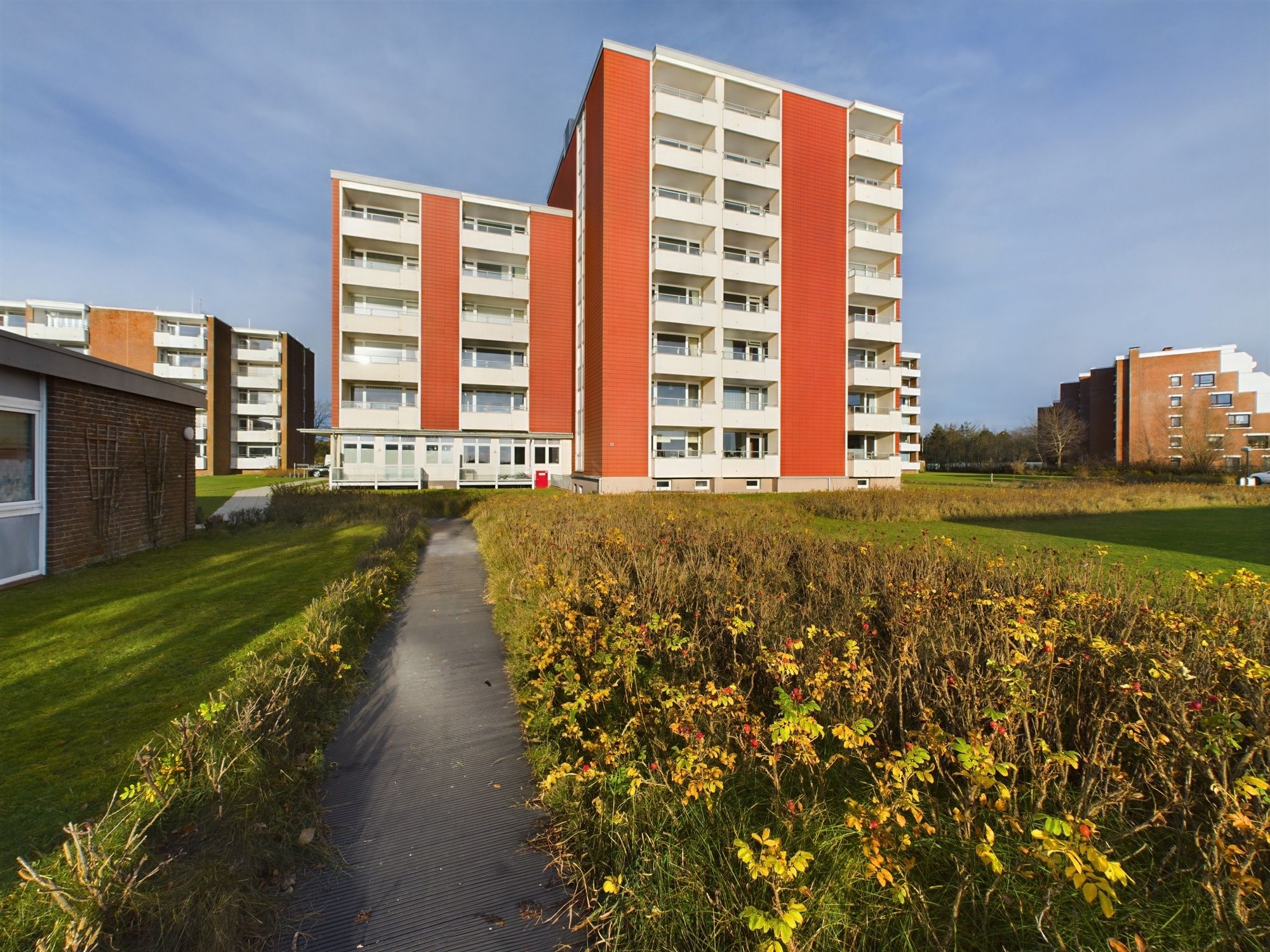 Das helle Appartement verfügt über ein geräumiges Wohn-Esszimmer, ein Schlafzimmer mit Doppelbett (180*200cm) und über eine Stufe erreichbar, liegt auf der Empore das komfortable Wohnzimmer mit einer ausziehbaren Schlafcouch. Die moderne Ausstattung umfasst WLAN, einen Flachbildfernseher mit Blu-ray Player und eine Sonos-Box. Ein kostenfreier Parkplatz ist direkt am Haus verfügbar. Die Lage in der Nähe des Wyker Südstrands bietet Ruhe und eine direkte Anbindung an die Strandpromenade. Eine Bushaltestelle vor der Tür ermöglicht schnelle Fahrten in die Stadt und zu den Inselattraktionen. Für Ihre Entspannung und den perfekten Strandtag bieten wir Ihnen einen Strandkorb inklusive Strandlaken am Wyker Strand (Abschnitt 28), nur wenige Gehminuten von der Wohnung entfernt. Der Golfplatz ist nur wenige Gehminuten entfernt.