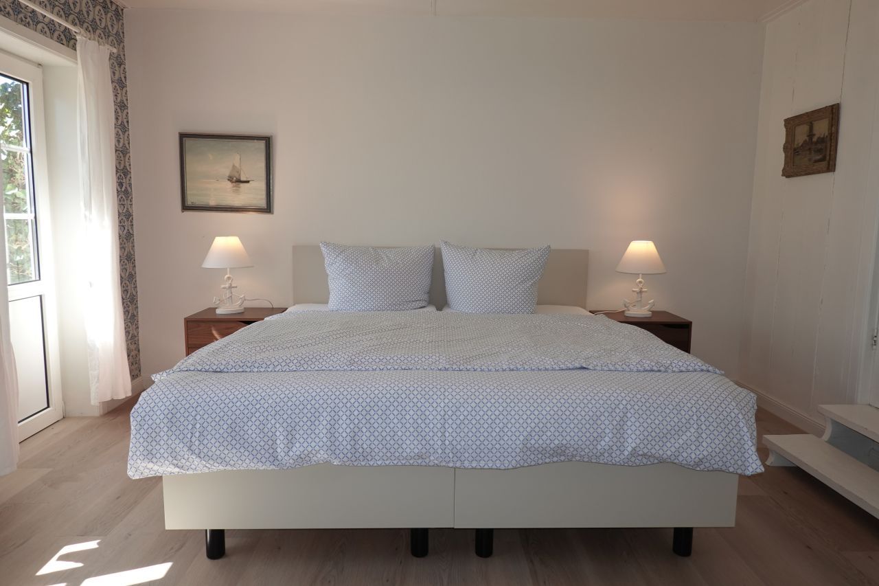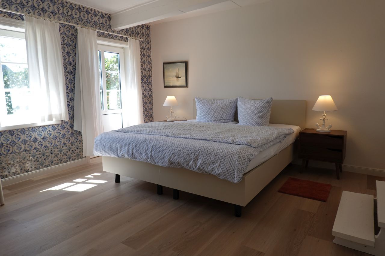 Im Elternschlafzimmer trifft Tradition auf Komfort: Die Delfter Kacheln setzen auch hier stilvolle Akzente, das neue Doppelbett sorgt für erholsamen Schlaf. Für kleine Gäste stehen zwei separate Kinderzimmer zur Verfügung – jeweils mit Einzelbett, eines davon lässt sich bei Bedarf zu einem zweiten Bett erweitern.
