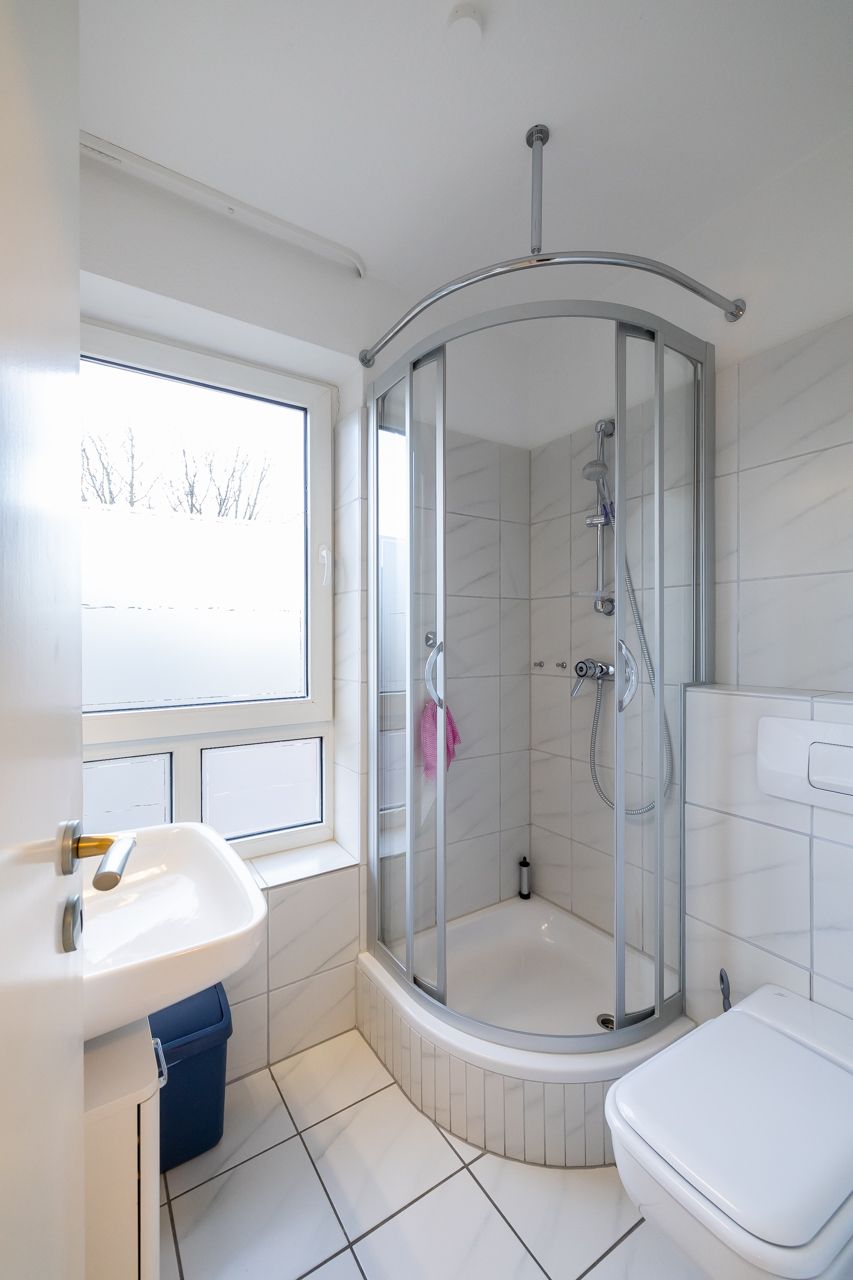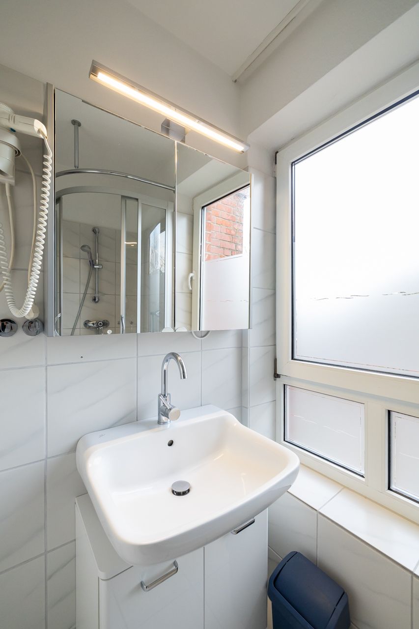 Vom Wohnungsflur aus gelangen Sie zur praktischen Küchenzeile, dem kombinierten Wohn-Schlafzimmer, dem Schlafzimmer mit Einzelbett und dem neuwertigen Duschbad mit Fenster und Tageslicht. Die Küchenzeile ist modern und zweckmäßig ausgestattet, vorhanden sind: u.a. eine Mikrowelle und ein kleines Cerankochfeld. Das Duschbad mit Fenster ist in einem neuen Zustand.