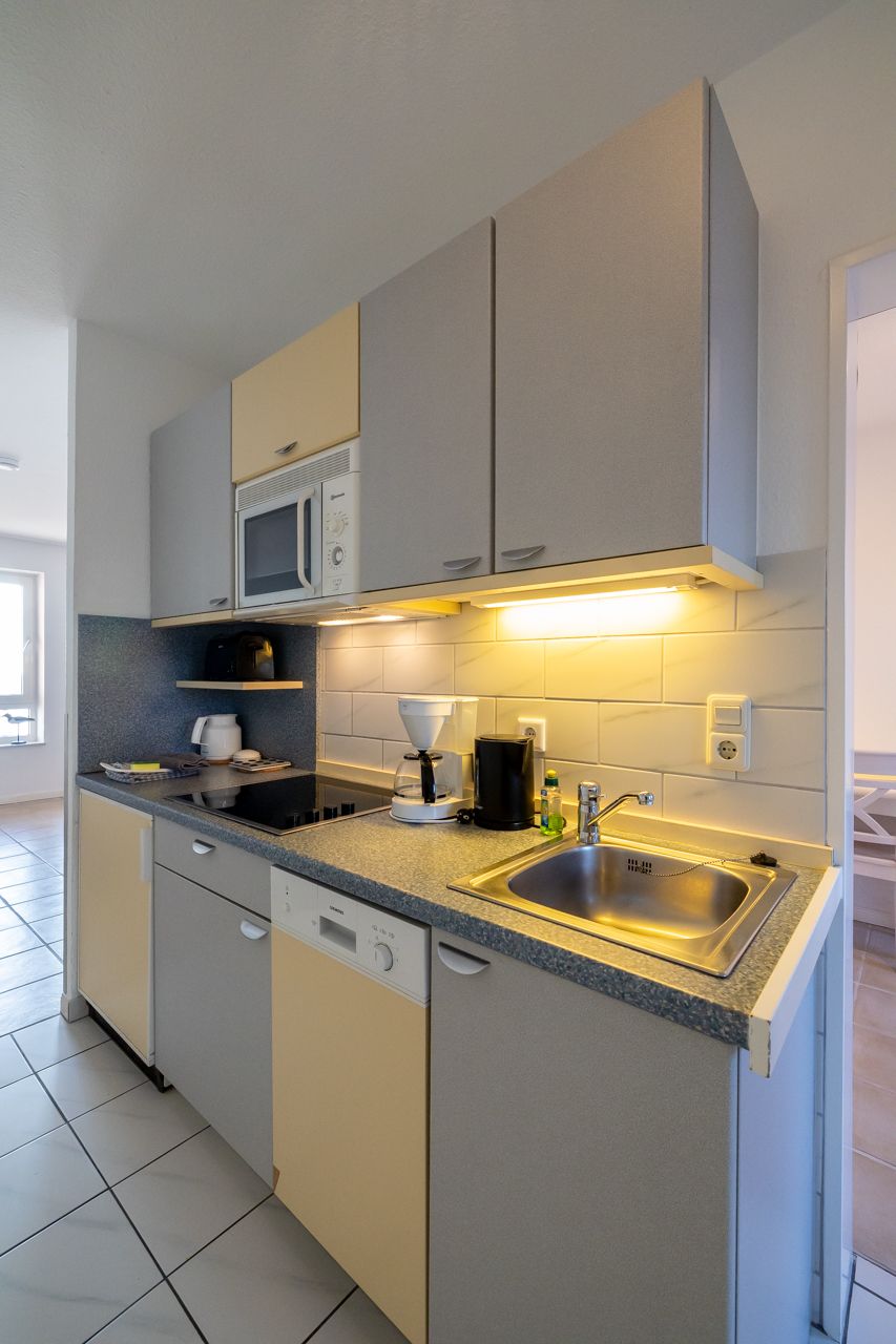 Vom Wohnungsflur aus gelangen Sie zur praktischen Küchenzeile, dem kombinierten Wohn-Schlafzimmer, dem Schlafzimmer mit Einzelbett und dem neuwertigen Duschbad mit Fenster und Tageslicht. Die Küchenzeile ist modern und zweckmäßig ausgestattet, vorhanden sind: u.a. eine Mikrowelle und ein kleines Cerankochfeld. Das Duschbad ist in einem neuen Zustand. Zur Ausstattung gehören: großflächige Fliesen und eine moderne Duschkabine.
