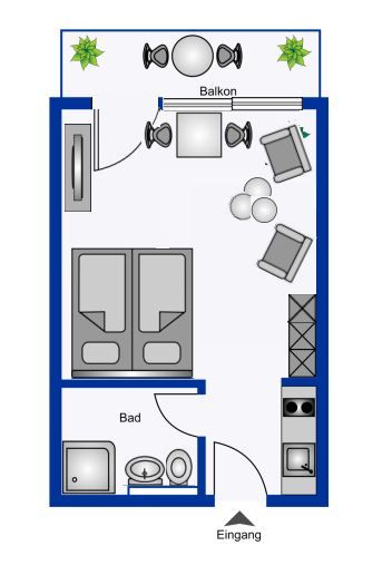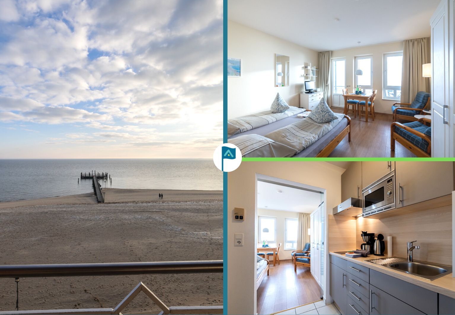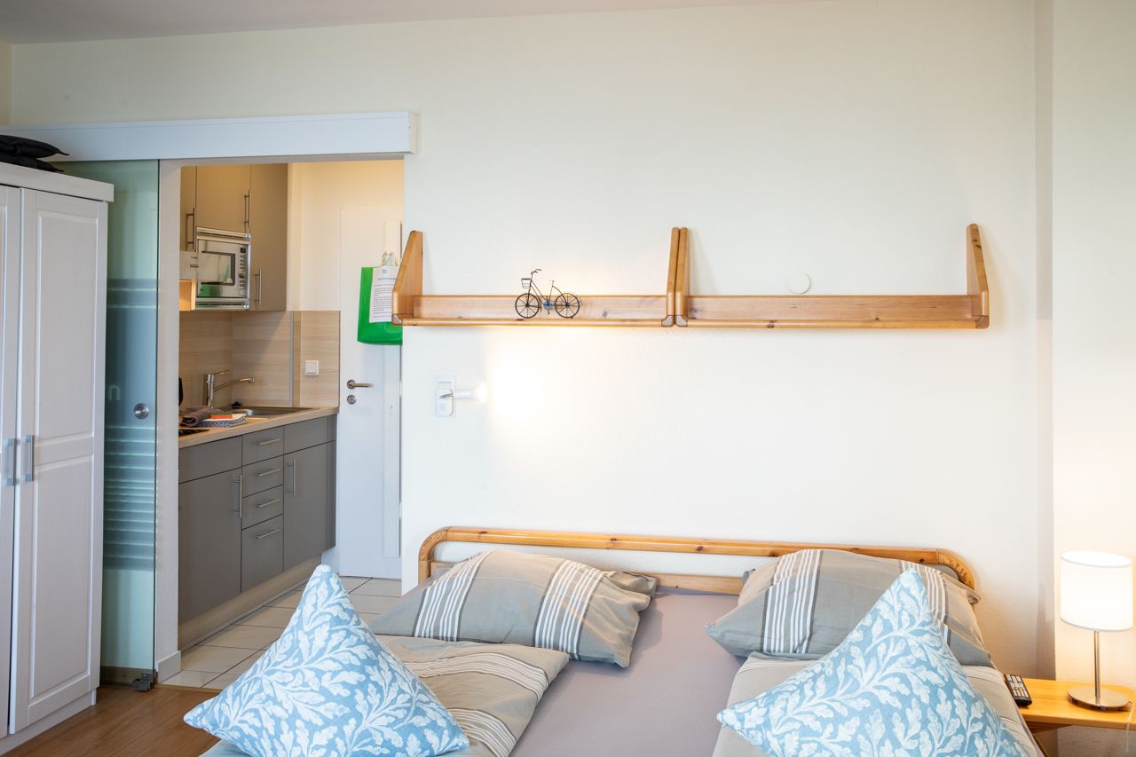 Die Wohnung besteht aus einem Wohnschlafraum mit einem Doppelbett, Duschbad und Küchenzeile. Ebenso hat diese Wohnung eine große Tür und Fenster mit Balkon zum Wasser, mit uneingeschränkten Meerblick. W-Lan, Satelliten-TV und CD-Player und Blue-Ray, Radio sind natürlich vorhanden. Bei Bedarf stellen wir Ihnen gern ein Kinderreisebett und/ oder einen Hochstuhl kostenfrei bereit. Auf Anfrage ist die Mitnahme eines Hundes möglich.
